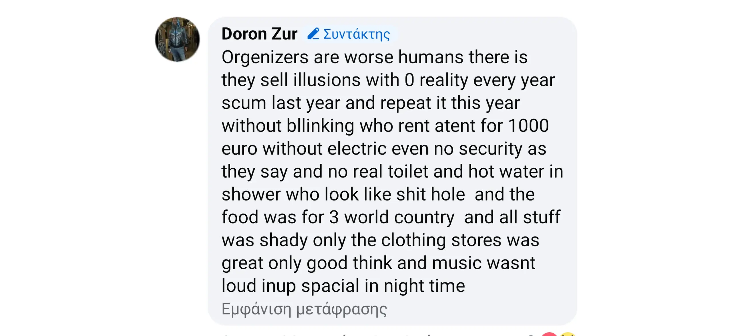Σας υπενθυμίζω ότι, αν από την πρώτη χρονιά παραμένατε στον χώρο σας κατά τη διάρκεια του φεστιβάλ και δεν αποχωρούσατε, τα επόμενα δύο χρόνια δεν θα είχαμε υποστεί αυτή την ταλαιπωρία.