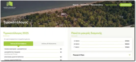 Τον τιμοκατάλογο για την σεζόν 2025 Camping Asprovalta
